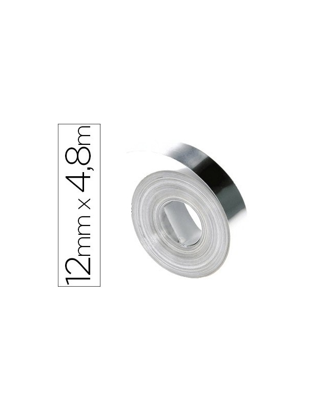 Cinta dymo aluminio 12mm x 4,8mt sin adhesivo para rotuladora