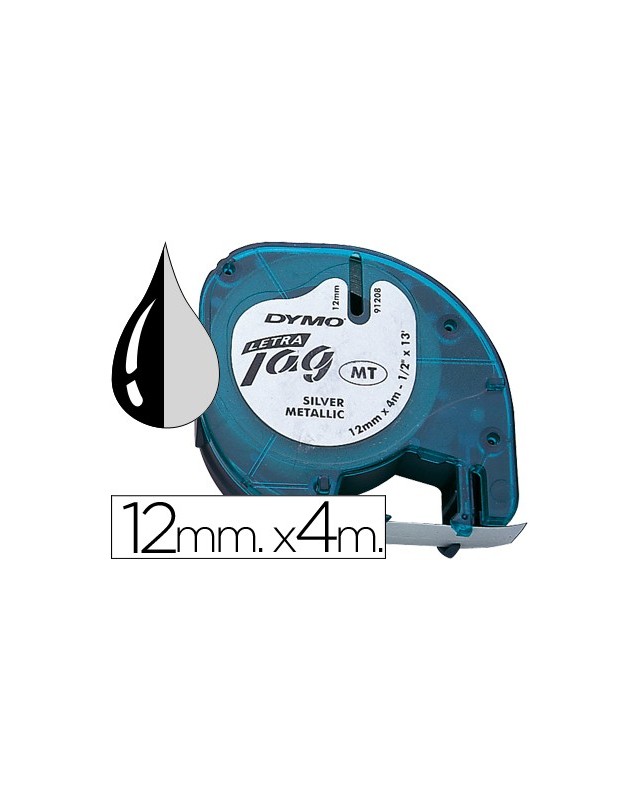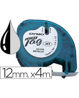 Cinta dymo metalizada 12mmx4mt -negro/plata para letratag