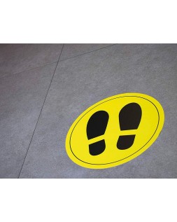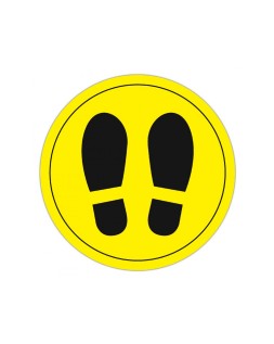 CÍRCULO DE SEÑALIZACIÓN ADHESIVO ILUSTRACIÓN DE ZAPATOS DE ø 30 CM. ACABADO MATE Y ADHESIVO SOLVENTE DE ALTA RESISTENCIA QUE NO DEJA RESIDUOS.COLOR AMARILLO Y NEGRO. EL FILM DE PVC PERMITE DAR GRAN CONSISTENCIA A LA CINTA, APORTA MUCHA RIGIDEZ Y LA HACE MUY RESISTENTE, OFRECE 100 MICRAS CON IMPRIMACIÓN PARA GARANTIZAR UN PRODUCTO DE ALTA DURABILIDAD.