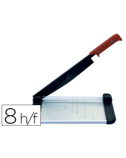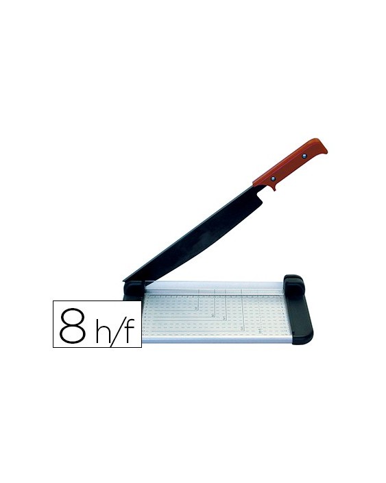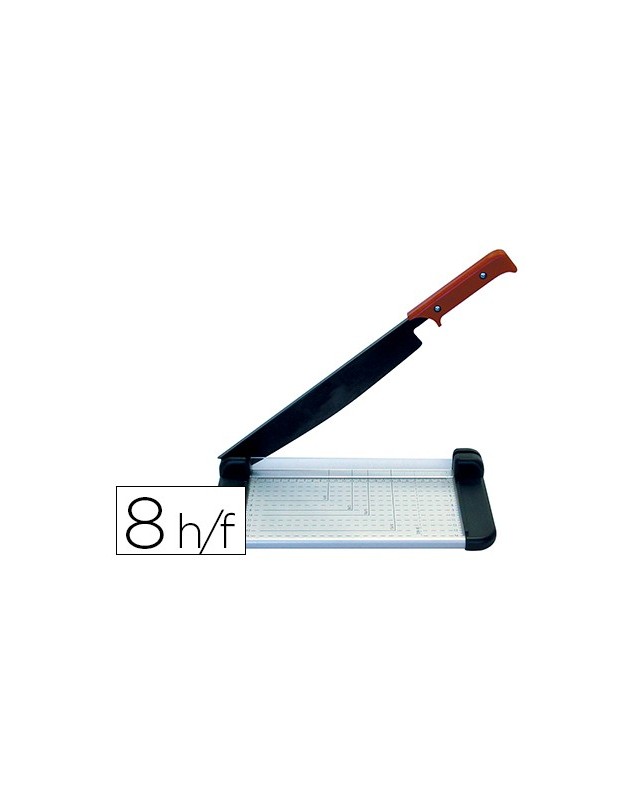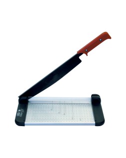 Máquina cortadora con base de alumnio. Robusta y con medidas grabadas en centímetros, pulgadas y resto de formatos habituales. Cuchilla de acero de gran calidad con filo cortado a láser. Con protección de seguridad para los dedos. Precisa y fácil de utilizar. Capacidad de corte: 8 hojas. Disponible en varios tamaños con diversas longitudes de corte.
