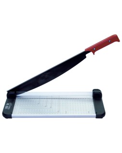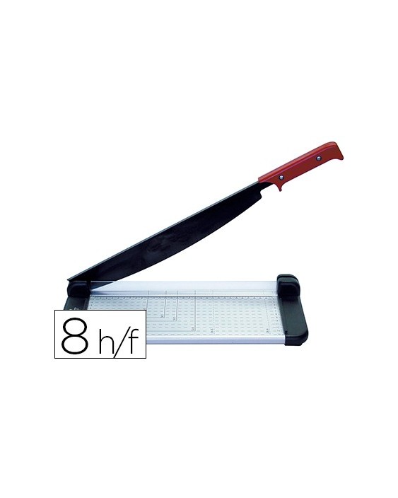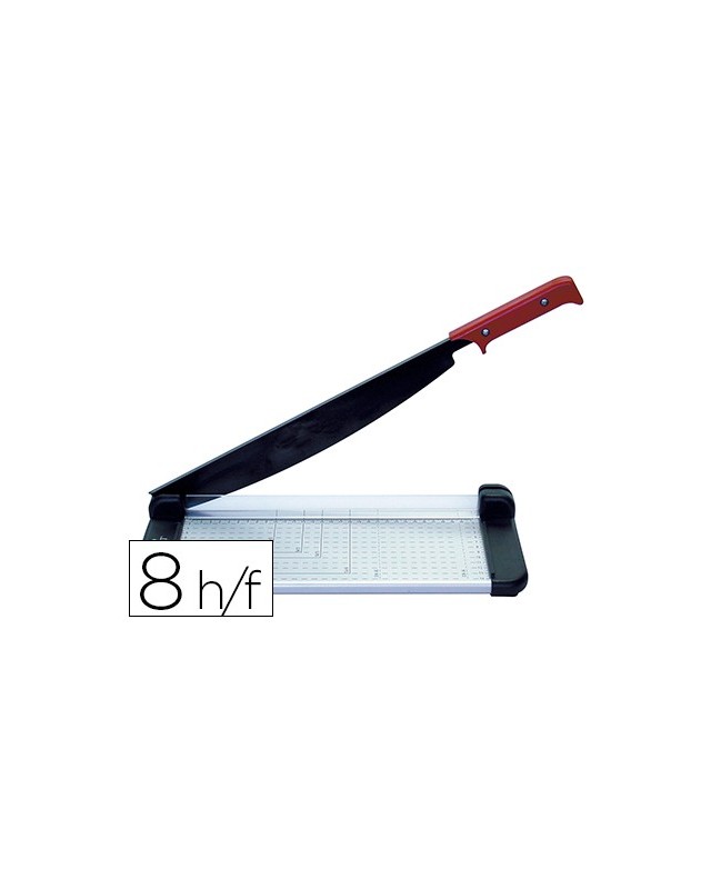 Máquina cortadora con base de alumnio. Robusta y con medidas grabadas en centímetros, pulgadas y resto de formatos habituales. Cuchilla de acero de gran calidad con filo cortado a láser. Con protección de seguridad para los dedos. Precisa y fácil de utilizar. Capacidad de corte: 8 hojas. Disponible en varios tamaños con diversas longitudes de corte.