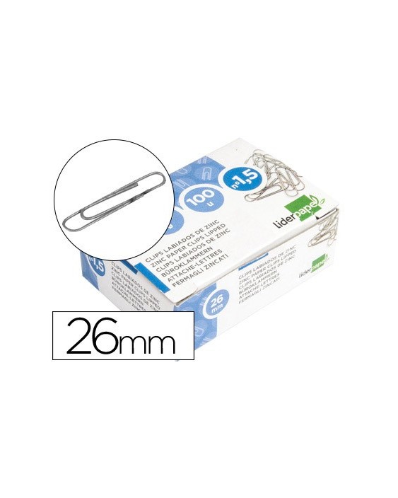 Clips liderpapel nº1,5 labiados 26 mm caja de 100 unidades