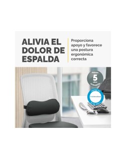 Cojín lumbar postural diseñado para ayudar a reducir las molestias en la espalda brindando apoyo y fomentando una postura ergonómica correcta. Diseño compacto para fácil transporte dondequiera que Diseño compacto para fácil transporte dondequiera que trabaje. Correa ajustable para mantenerla fija al respaldo. Espuma fabricada con un 93 % de contenido reciclado postconsumo y funda de tela fabricada con poliéster 100% reciclado posconsumo. Garantía aplicada de 5 años. Medidas 350x60x170 mm.