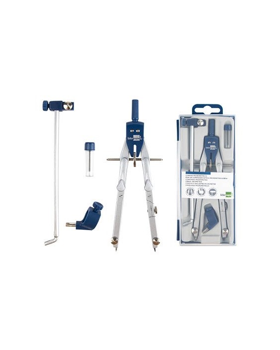 Compas liderpapel micrometrico con bigotera rapida adaptador y alargadera