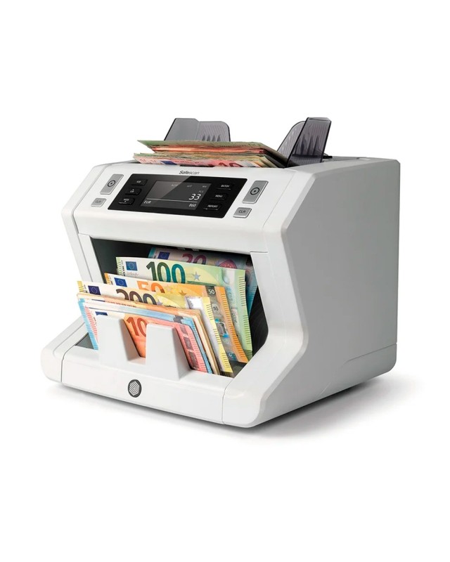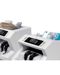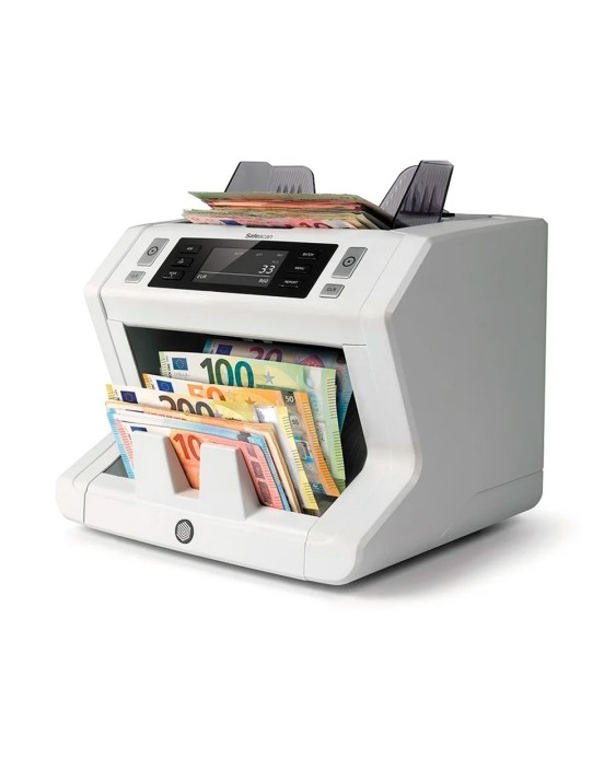 Contadora para los billetes clasificados de todas las divisas. Cuenta hasta 1500 billetes por minuto. Tolva con capacidad para 500 billetes. 3 formas de detección: UV, MG y tamaño. Función de suma y conteo. Pantalla táctil de alta definición y menú de acceso rápido. Medidas: 259 x 240 x 255 mm. Peso: 6,4 kg.