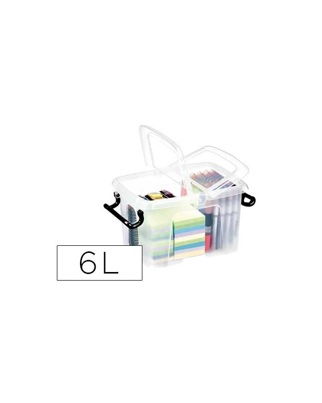 Contenedor de almacenamiento. Clip de apertura de la tapa en los 2 lados para un fácil acceso al contenido. 2 pinzas de mango proporcionan un cierre seguro. Borde ancho alrededor del perímetro para llevar fácilmente la caja. Ruedas para un mejor desplazamiento. Apilable. Contenido no incluido.