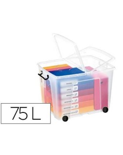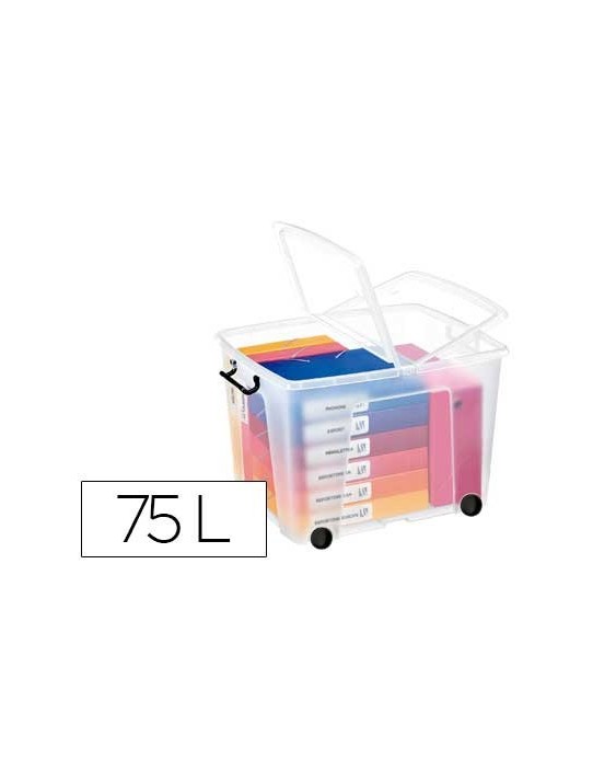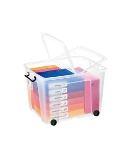 Contenedor de almacenamiento. Clip de apertura de la tapa en los 2 lados para un fácil acceso al contenido. 2 pinzas de mango proporcionan un cierre seguro. Borde ancho alrededor del perímetro para llevar fácilmente la caja. Ruedas para un mejor desplazamiento. Apilable. Contenido no incluido.