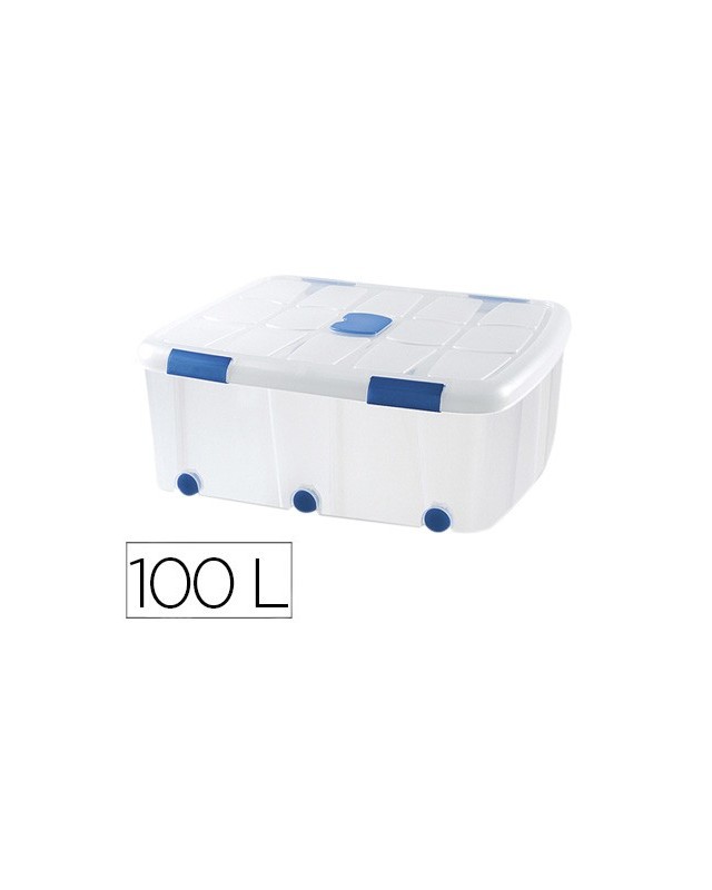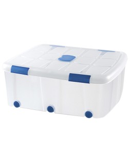 Caja de plástico para ordenación con ruedas y polillero. Indicada especialmente para guardar calzado, ropa, sábanas, mantas y cualquier producto textil y de armario. Son perfectas para guardar la ropa de temporada gracias a su polillero para producto antipolillas, además sus ruedas facilitan el cambio de armario. La tapa con cierres a presión ayuda a la conservación y aislamiento de las prendas.
