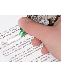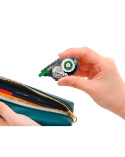 Cinta correctora con diseño ergonómico y tecnología de aplicación lateral para una corrección especialmente cómoda y precisa. Cinta PET resistente al desgarro, aplicable hasta el último milímetro. Sin tiempo de secado, permite escribir encima inmediatamente y con gran pulcritud tras su aplicación. Carcasa hecha con plástico 100% reciclado. Ancho de la cinta: 4,2 mm. Largo: 10 m.