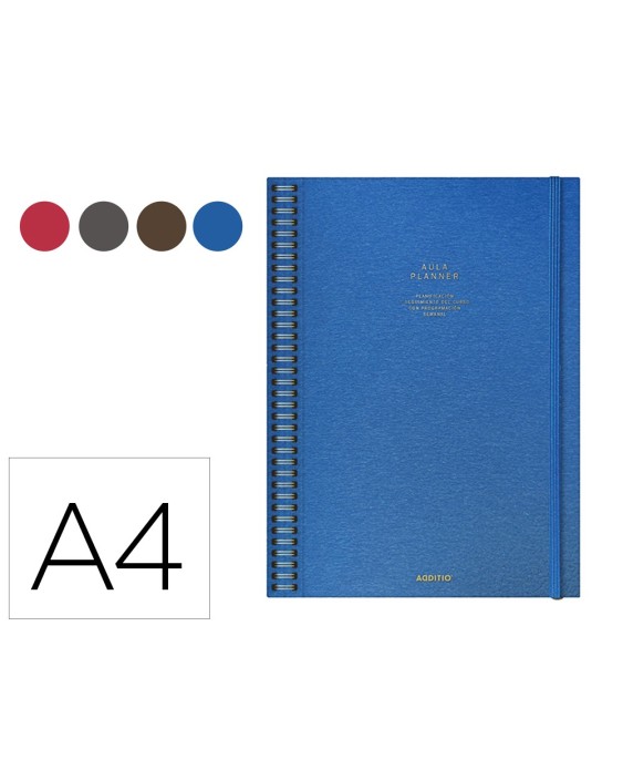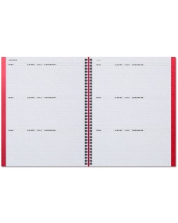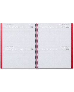 Cuaderno para los docentes. Planificación anual y mensual del curso. Programación, vista semanal vertic al a doble página con espacio para las prioridades diarias y para anotaciones semanales. Evaluación, para 6 grupos de hasta 35 alumnos. Reuniones, 48 fichas. Anotaciones, páginas en blanco para ideas, esquemas, planes... o para pegar los documentos del centro. Formato: 160 páginas, encuadernación doble espiral con goma elástica. Con 3 marcapáginas. Acabados premium, certificado FSC.