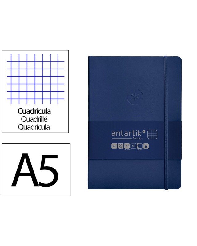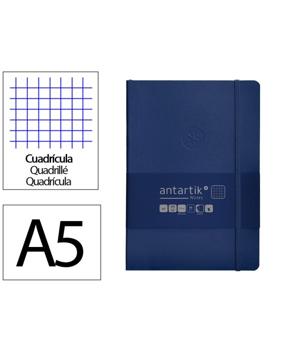 Cuaderno con gomilla antartik notes tapa blanda a5 hojas cuadricula azul marino 80 hojas 80 gr fsc