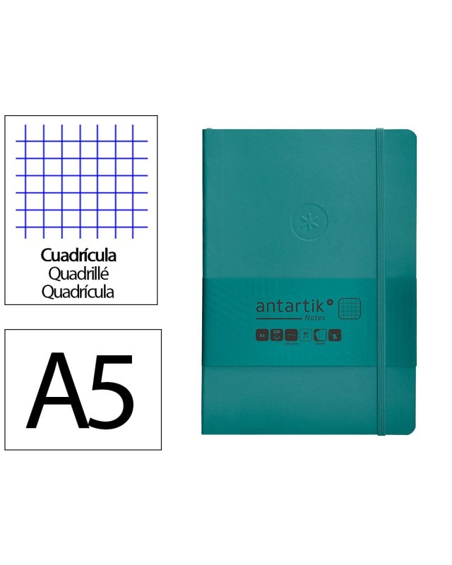 Cuaderno con gomilla antartik notes tapa blanda a5 hojas cuadricula verde aguamarina 80 hojas 80 gr fsc
