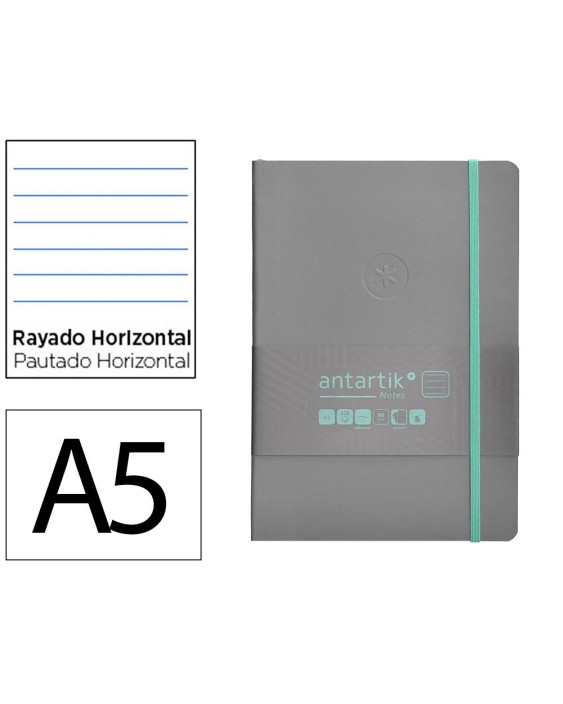 Cuaderno con gomilla antartik notes tapa blanda a5 hojas rayas gris y turquesa 80 hojas 80 gr fsc