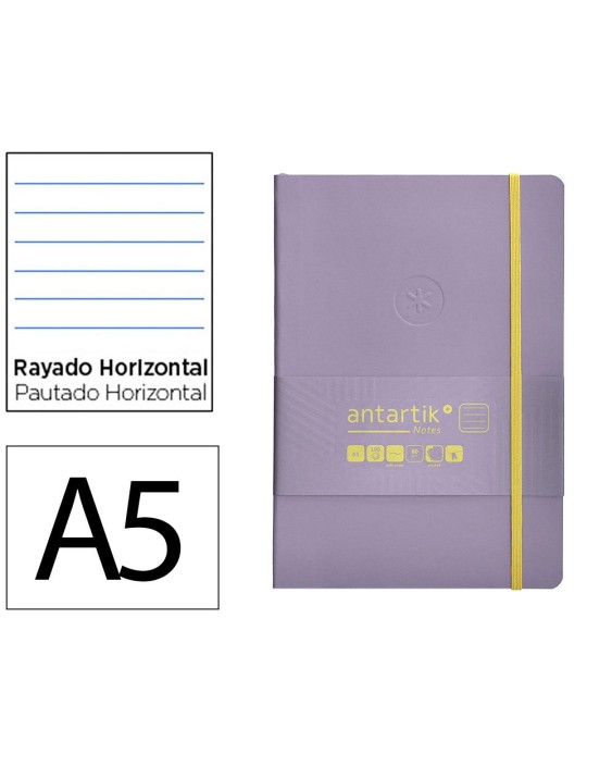 Cuaderno con gomilla antartik notes tapa blanda a5 hojas rayas morado y amarillo 80 hojas 80 gr fsc