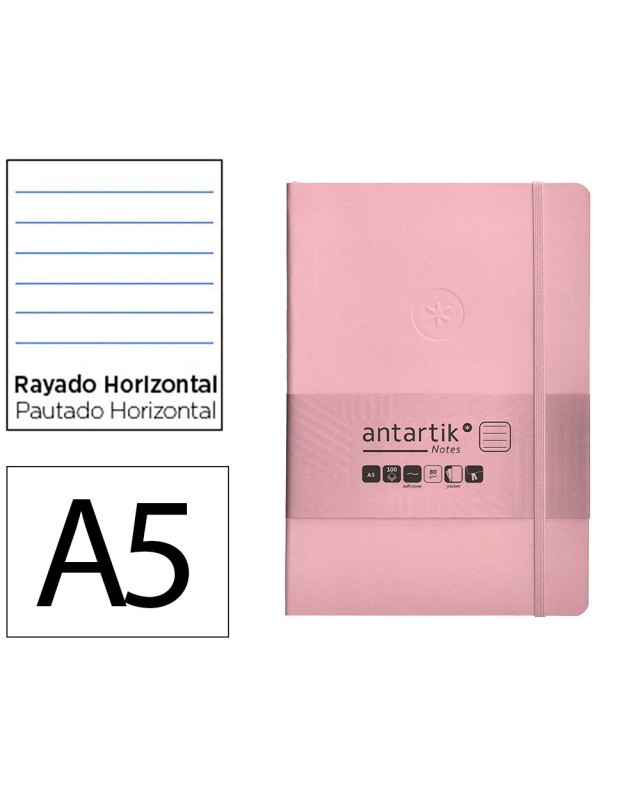 Cuaderno con gomilla antartik notes tapa blanda a5 hojas rayas rosa pastel 80 hojas 80 gr fsc