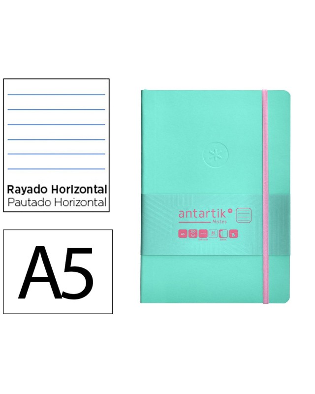 Cuaderno con gomilla antartik notes tapa blanda a5 hojas rayas rosa y turquesa 80 hojas 80 gr fsc