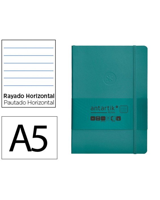 Cuaderno con gomilla antartik notes tapa blanda a5 hojas rayas verde aguamarina 80 hojas 80 gr fsc