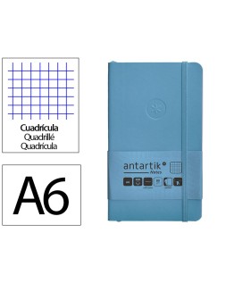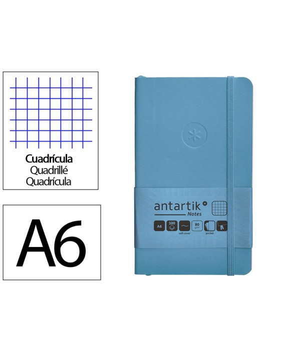 Cuaderno con gomilla antartik notes tapa blanda a6 cuadricula azul claro 100 hojas 80 gr fsc