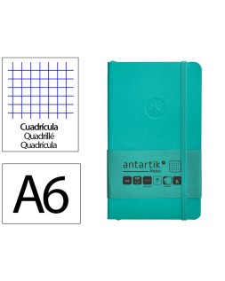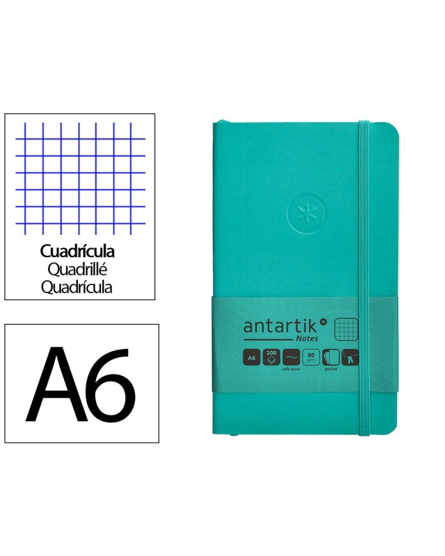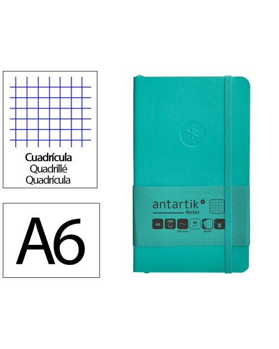 Cuaderno con gomilla antartik notes tapa blanda a6 cuadricula turquesa 100 hojas 80 gr fsc