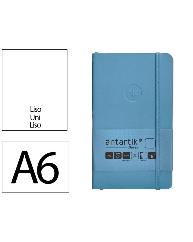 Cuaderno con gomilla antartik notes tapa blanda a6 hojas lisas azul claro 100 hojas 80 gr fsc