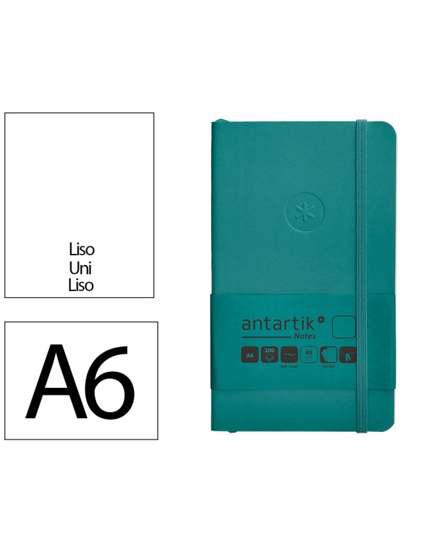 Cuaderno con gomilla antartik notes tapa blanda a6 hojas lisas verde aguamarina 100 hojas 80 gr fsc