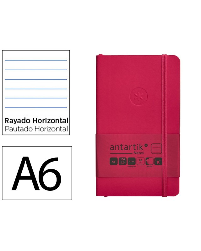 Cuaderno con gomilla antartik notes tapa blanda a6 rayas burdeos 100 hojas 80 gr fsc
