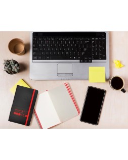 Cuaderno con gomilla antartik notes tapa blanda a6 rayas negro y rojo 100 hojas 80 gr fsc