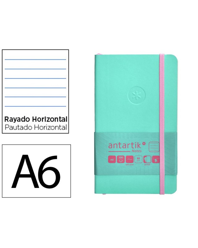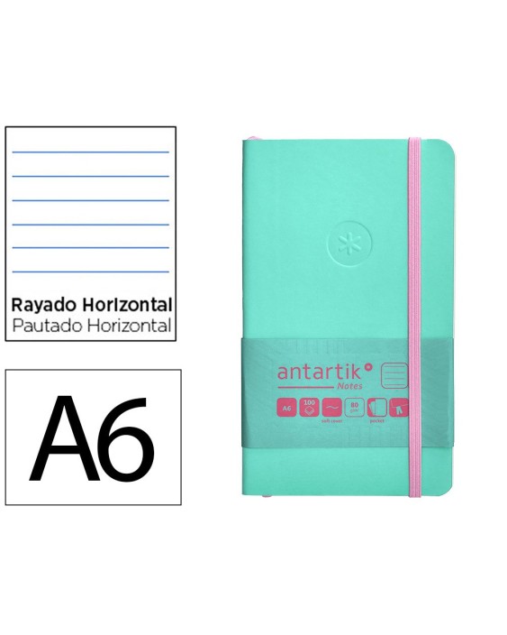Cuaderno con gomilla antartik notes tapa blanda a6 rayas rosa y turquesa 100 hojas 80 gr fsc