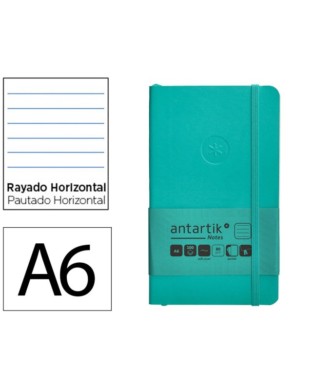 Cuaderno con gomilla antartik notes tapa blanda a6 rayas turquesa 100 hojas 80 gr fsc
