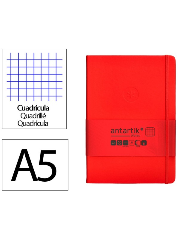 Cuaderno con gomilla antartik notes tapa dura a5 hojas cuadricula rojo 100 hojas 80 gr fsc