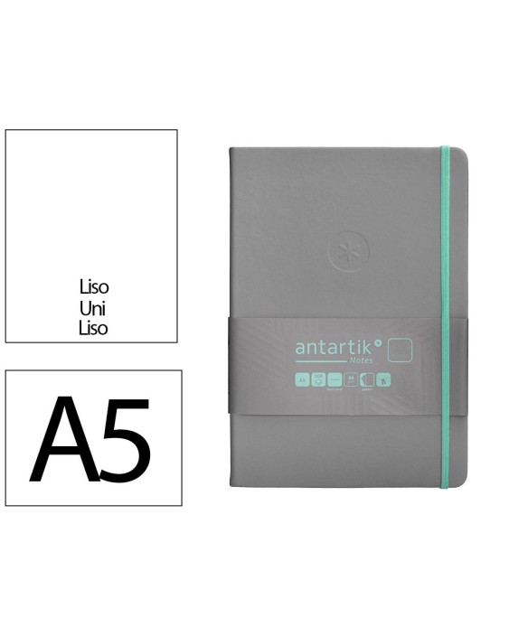 Cuaderno con gomilla antartik notes tapa dura a5 hojas lisas gris y turquesa 100 hojas 80 gr fsc