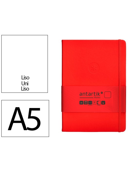 Cuaderno con gomilla antartik notes tapa dura a5 hojas lisas rojo 100 hojas 80 gr fsc