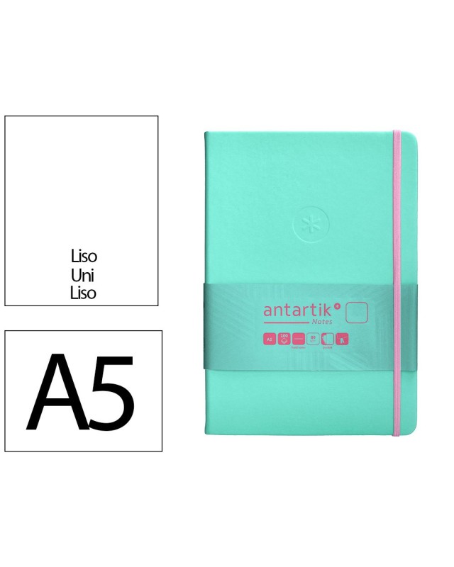Cuaderno con gomilla antartik notes tapa dura a5 hojas lisas rosa y turquesa 100 hojas 80 gr fsc