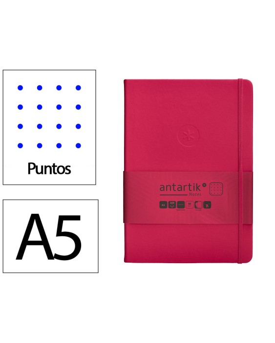 Cuaderno con gomilla antartik notes tapa dura a5 hojas puntos burdeos 100 hojas 80 gr fsc