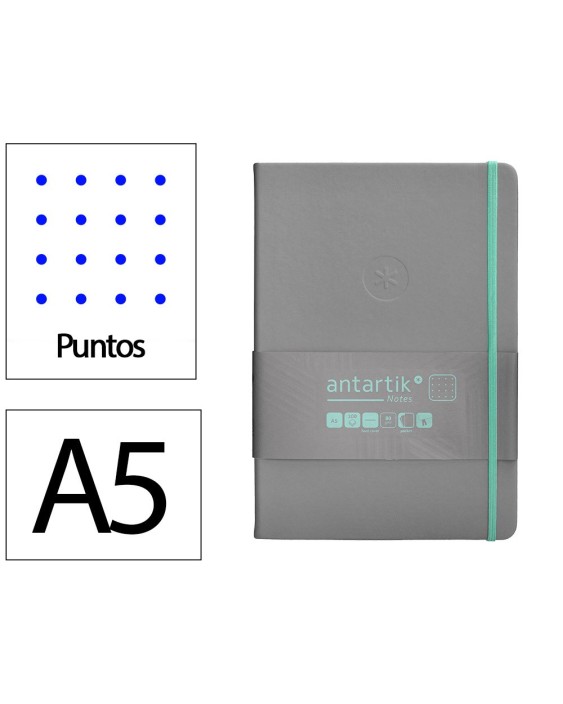 Cuaderno con gomilla antartik notes tapa dura a5 hojas puntos gris y turquesa 100 hojas 80 gr fsc