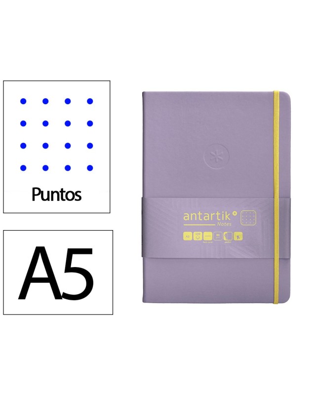 Cuaderno con gomilla antartik notes tapa dura a5 hojas puntos morado y amarillo 100 hojas 80 gr fsc
