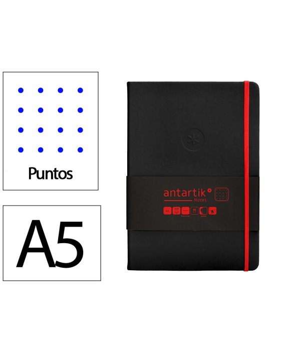 Cuaderno con gomilla antartik notes tapa dura a5 hojas puntos negro y rojo 100 hojas 80 gr fsc