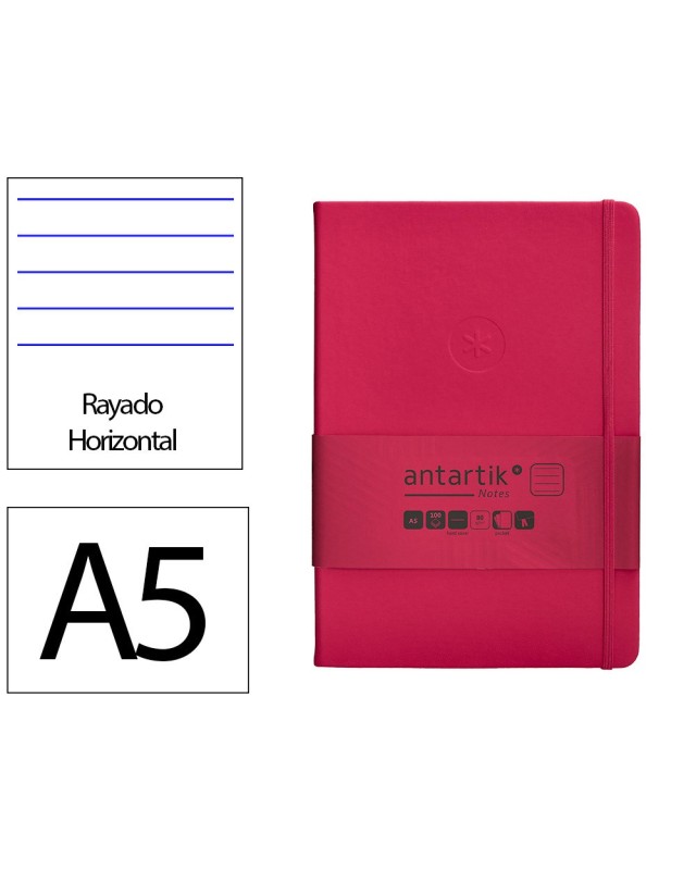 Cuaderno con gomilla antartik notes tapa dura a5 hojas rayas burdeos 100 hojas 80 gr fsc