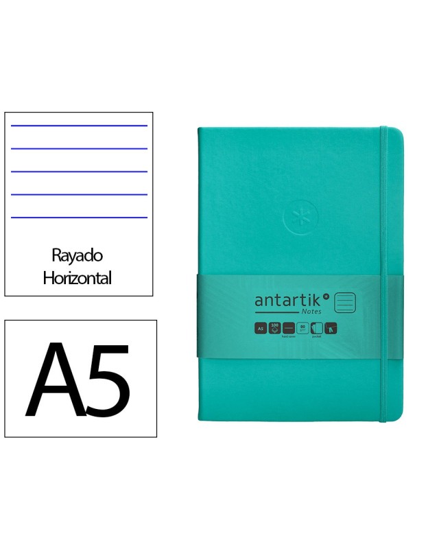 Cuaderno con gomilla antartik notes tapa dura a5 hojas rayas turquesa 100 hojas 80 gr fsc