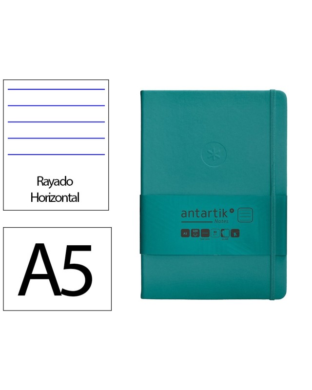 Cuaderno con gomilla antartik notes tapa dura a5 hojas rayas verde aguamarina 100 hojas 80 gr fsc