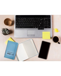 Cuaderno con gomilla antartik notes tapa dura a6 hojas cuadricula azul claro 100 hojas 80 gr fsc