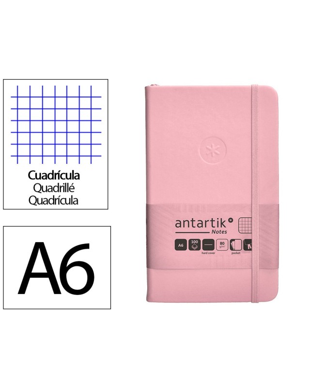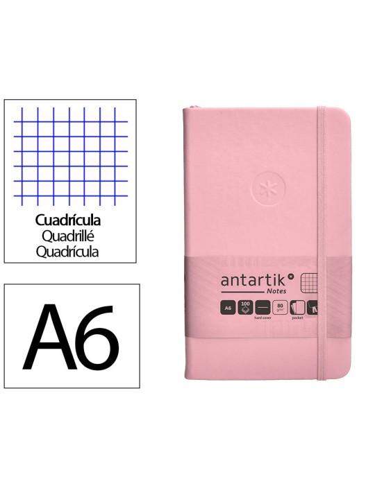 Cuaderno con gomilla antartik notes tapa dura a6 hojas cuadricula rosa pastel 100 hojas 80 gr fsc