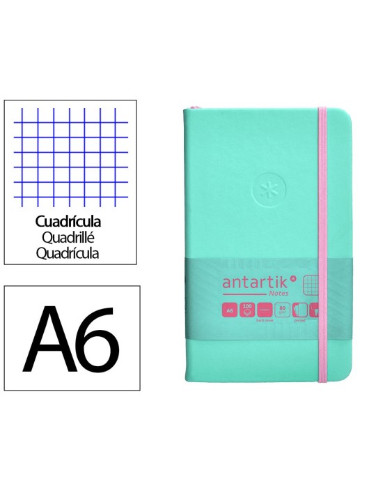 Cuaderno con gomilla antartik notes tapa dura a6 hojas cuadricula rosa y turquesa 100 hojas 80 gr fsc