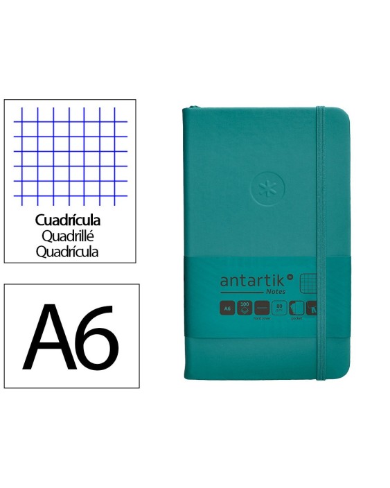 Cuaderno con gomilla antartik notes tapa dura a6 hojas cuadricula verde aguamarina 100 hojas 80 gr