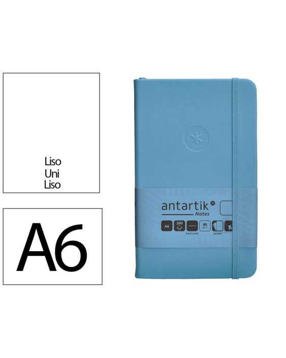 Cuaderno con gomilla antartik notes tapa dura a6 hojas lisas azul claro 100 hojas 80 gr fsc
