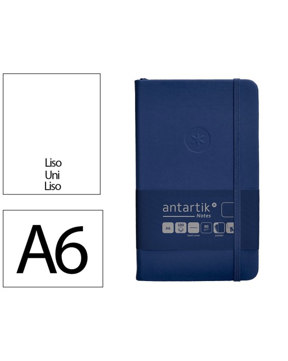 Cuaderno con gomilla antartik notes tapa dura a6 hojas lisas azul marino 100 hojas 80 gr fsc