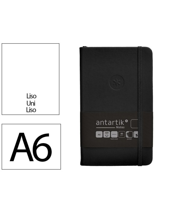 Cuaderno con gomilla antartik notes tapa dura a6 hojas lisas negro 100 hojas 80 gr fsc