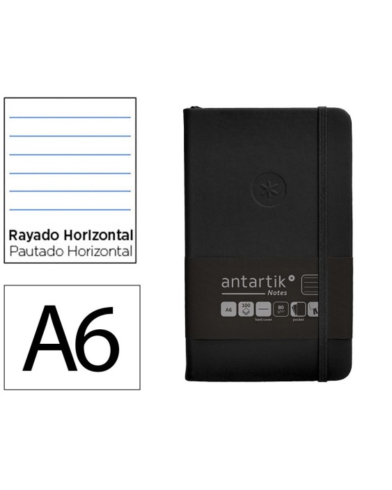 Cuaderno con gomilla antartik notes tapa dura a6 hojas rayas negro 100 hojas 80 gr fsc