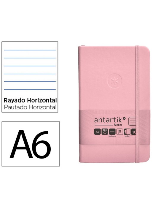 Cuaderno con gomilla antartik notes tapa dura a6 hojas rayas rosa pastel 100 hojas 80 gr fsc