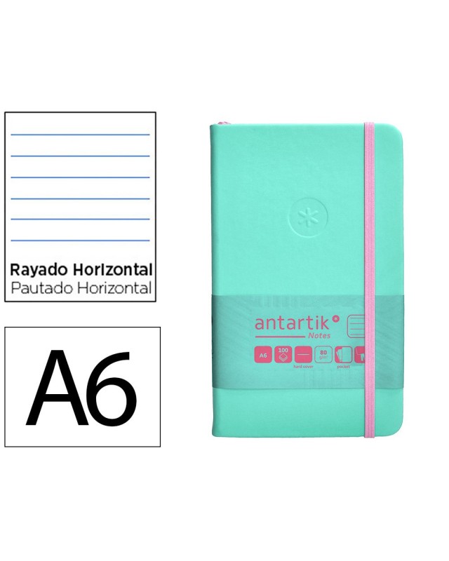 Cuaderno con gomilla antartik notes tapa dura a6 hojas rayas rosa y turquesa 100 hojas 80 gr fsc